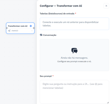 Após a importação dos arquivos, você pode conectá-los ao módulo de Inteligência Artificial. Nesse módulo, basta escrever um texto explicando o que deseja, e a IA irá analisar os dados para pesquisar informações, realizar ajustes e aplicar as transformações necessárias diretamente no arquivo.